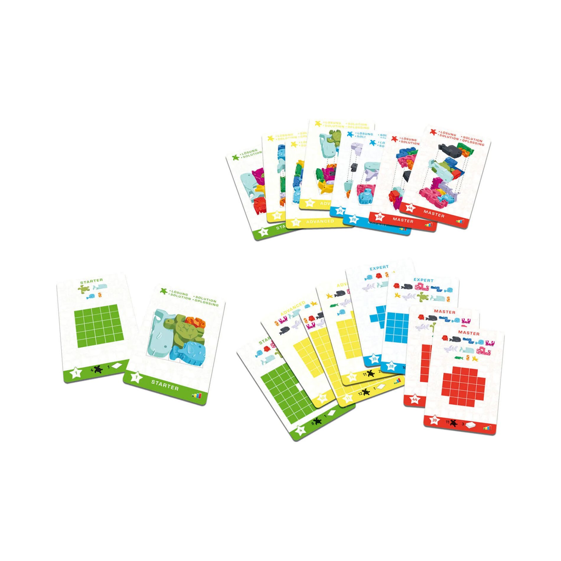 Sea Stax contents: 48 puzzles, 48 solutions, 12 sea animals, travel box, instruction.
